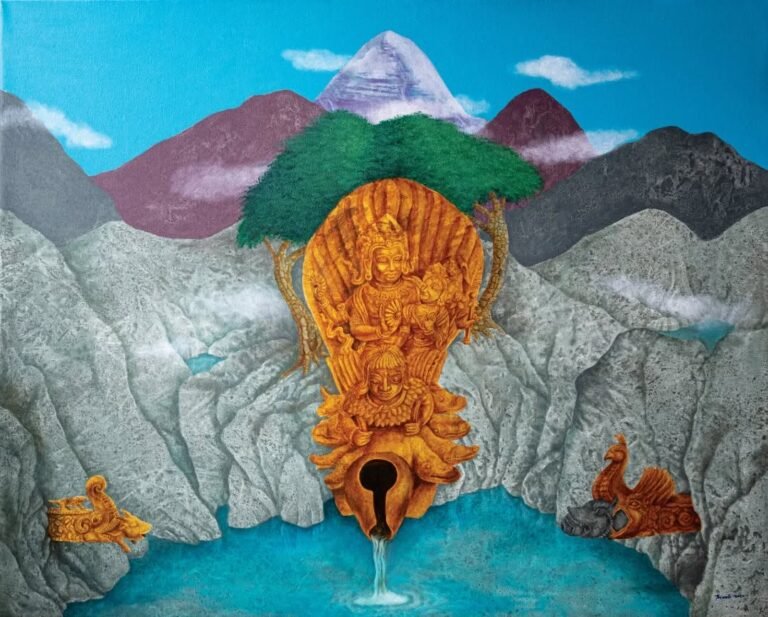 Pradhan’s works draw inspiration from spontaneous ideas and everyday emotions, aiming to develop a unique visual language that reflects his inner world.