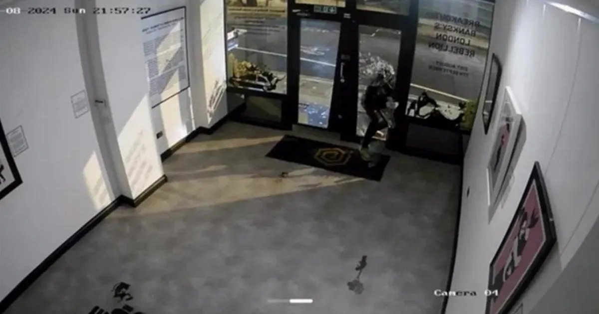 The art house stayed open for another 12 months after the initial heist the thief used a hammer to force entry through the glass doors before making off with the Banksy.