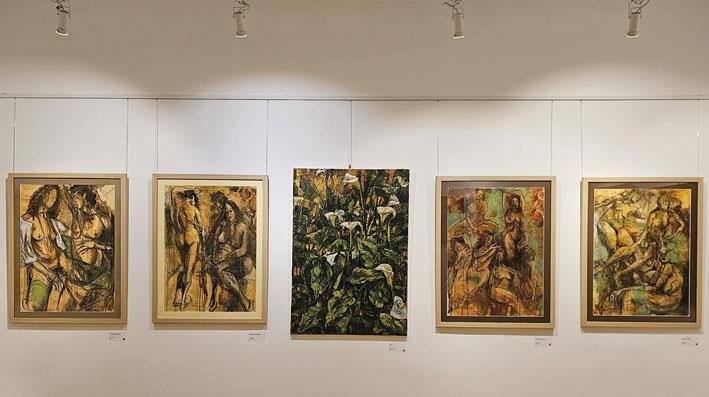 Catherine Cavallo’s latest exhibition Eve Refracted: The Eternal Cycle of Creation and Destruction at Gallery 23 reveals a garden of emotional and symbolic depth. Her paintings – lush with irises, fruit trees, and expressive female figures – explore the dualities of life, femininity, and nature through intuitive brushwork and poetic abstraction.
