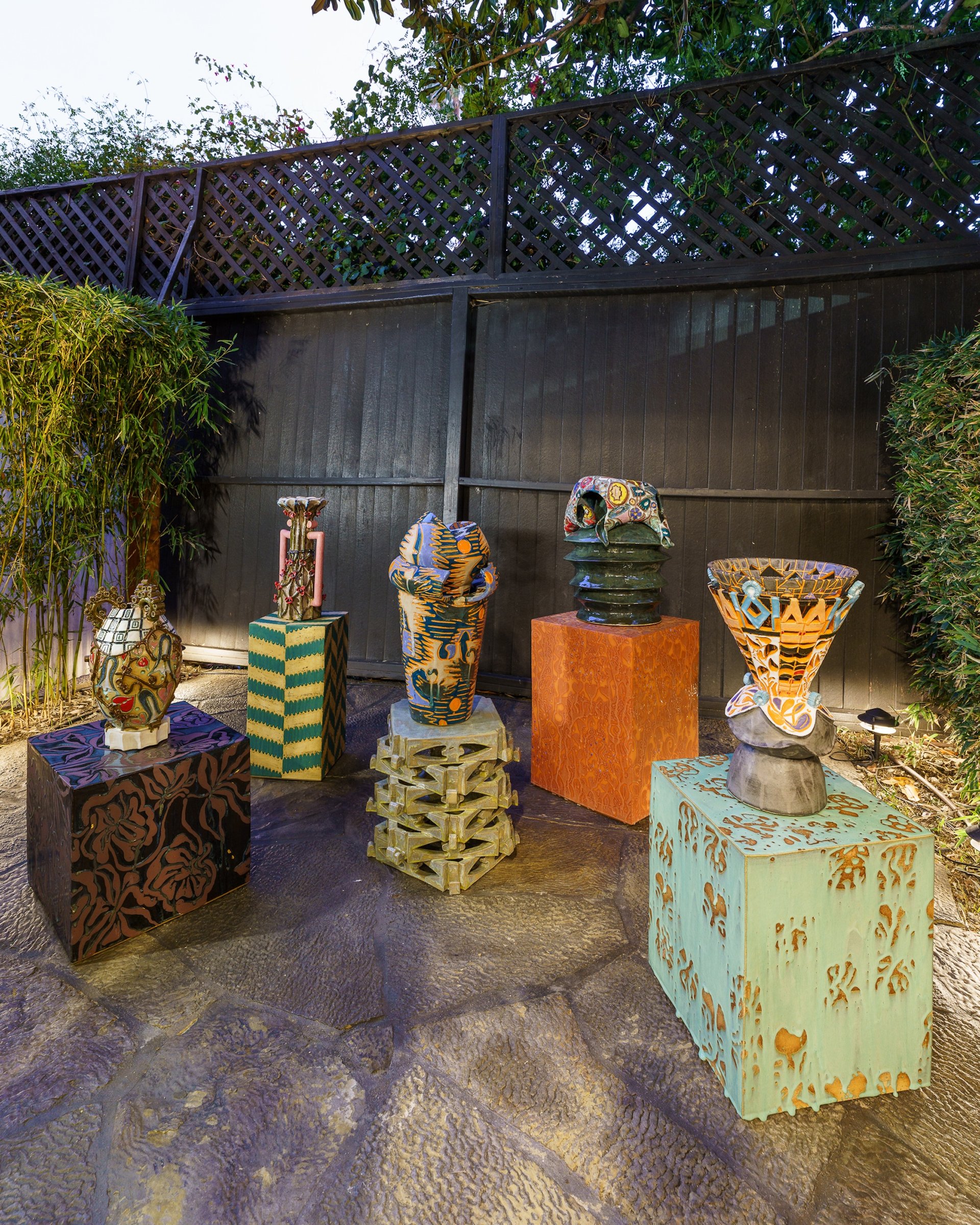Ceramic sculptures by Bari Ziperstein in the garden area of Charles Moffett’s cabana Photo by Silvia Ros, courtesy Charles Moffett