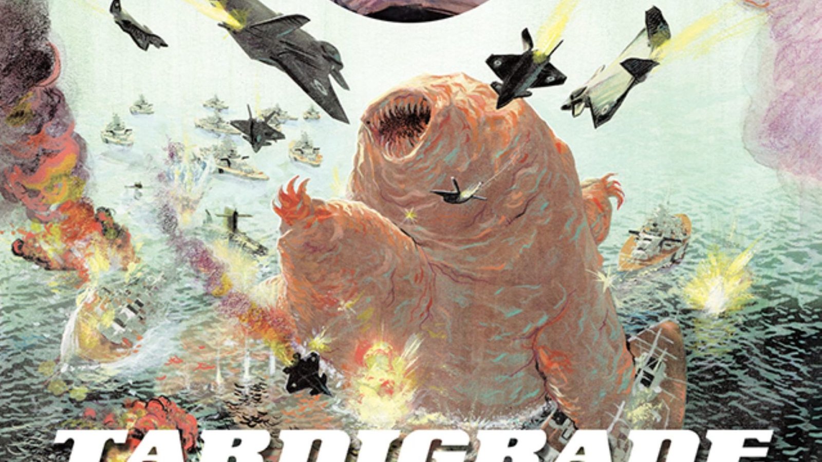 Kyle Baker is a master cartoonist, both in writing and art. His early graphic novel The Cowboy Wally Show remains one of the greatest graphic novels ever created, Why I Hate Saturn remains very popular, Nat Turner is in all god on library bookshelves, while his legacy is also established with titles such as DC’s The Shadow, Marvel’s Captain America: Truth: Red White And Black. He is now self-republishing his old world such as You Are Here and I Die At Midnight through Amazon and direct as Edgy Romcom or Viverra. Two volumes of his new Deathcathlon in the BD album fashion, as well as his Fine Art Gallery. And all are wonderful examples of comic book finery. But nothing gives you as much bang for your half-a-buck as his recent graphic novel Tardigrade. A monster-fighting book in the 1950s style, it’s a 94-page hardcover for $23.ย But if you are willing to go digital, it’s a mere $8.99 on Kindle in the USA, and a pittance of 49 pence on Kindle in the UK. Whatever price you pay, that is a score for a new graphic novel from a master of the form. But he has also uploaded the entire thing for free onto his website as well. Something he seems to have done with the shorter Deathcathlon Volume 1 and 2, his Fine Art Gallery, I Die At Midnight and You Are Here.