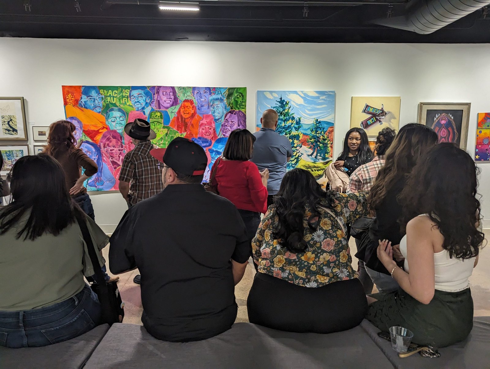 • Students, guests, and families gathered to view art pieces made by alumni in the Dord Fitz Formal Art Gallery in Mary Moody Northern Hall