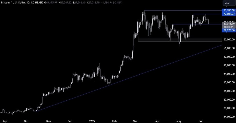 see that Bitcoin couldn’t extend above the 72000 resistance