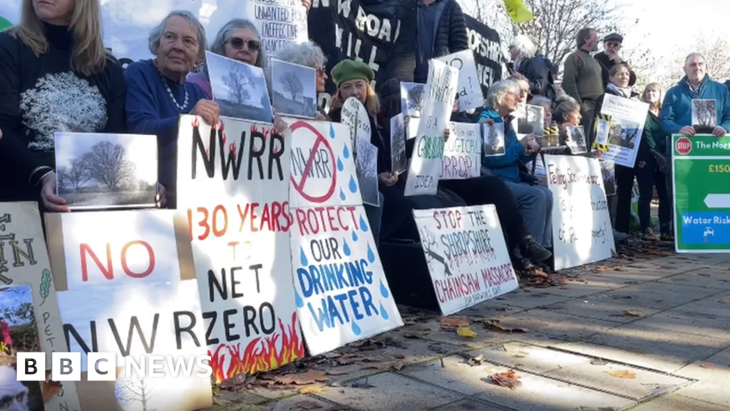 Image caption, Protesters staged a demonstration at a council meeting as plans for the road were approved earlier this year