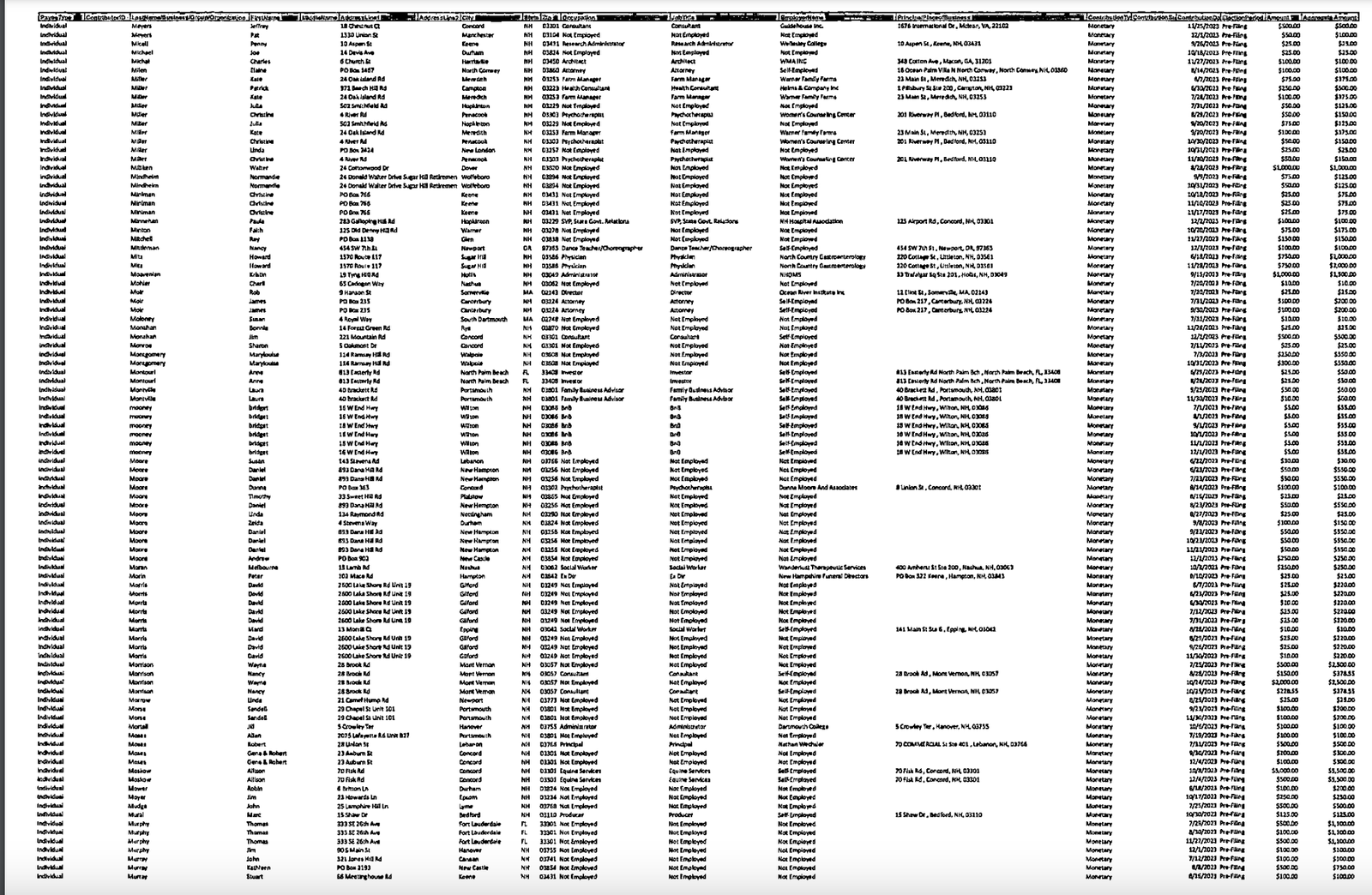 Warmington – whose campaign did not respond to questions about the reports – is not the first candidate to file faxed or scanned, barely legible campaign finance reports. Gov. Chris Sununu’s campaigns have long submitted similarly formatted reports, using tiny text whose quality degrades through the scanning process.