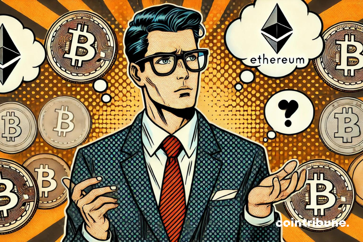 Un conseiller financier  hésitant entre plusieurs cryptos
