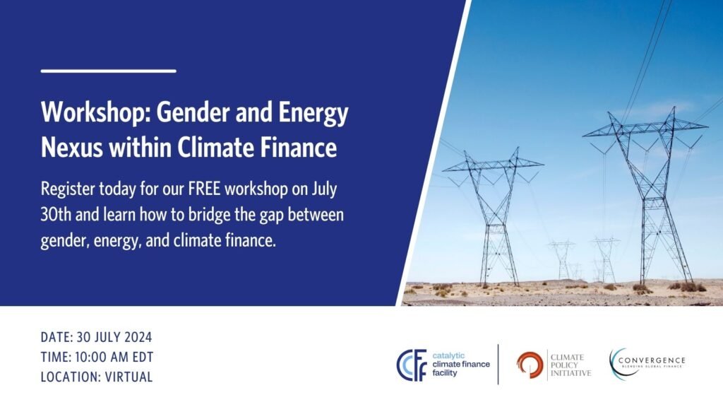 The Catalytic Climate Finance Facility will host a workshop on July 30th to equip attendees with the knowledge and tools to bridge the gap between gender, energy, and climate finance. This comprehensive workshop will achieve this by: